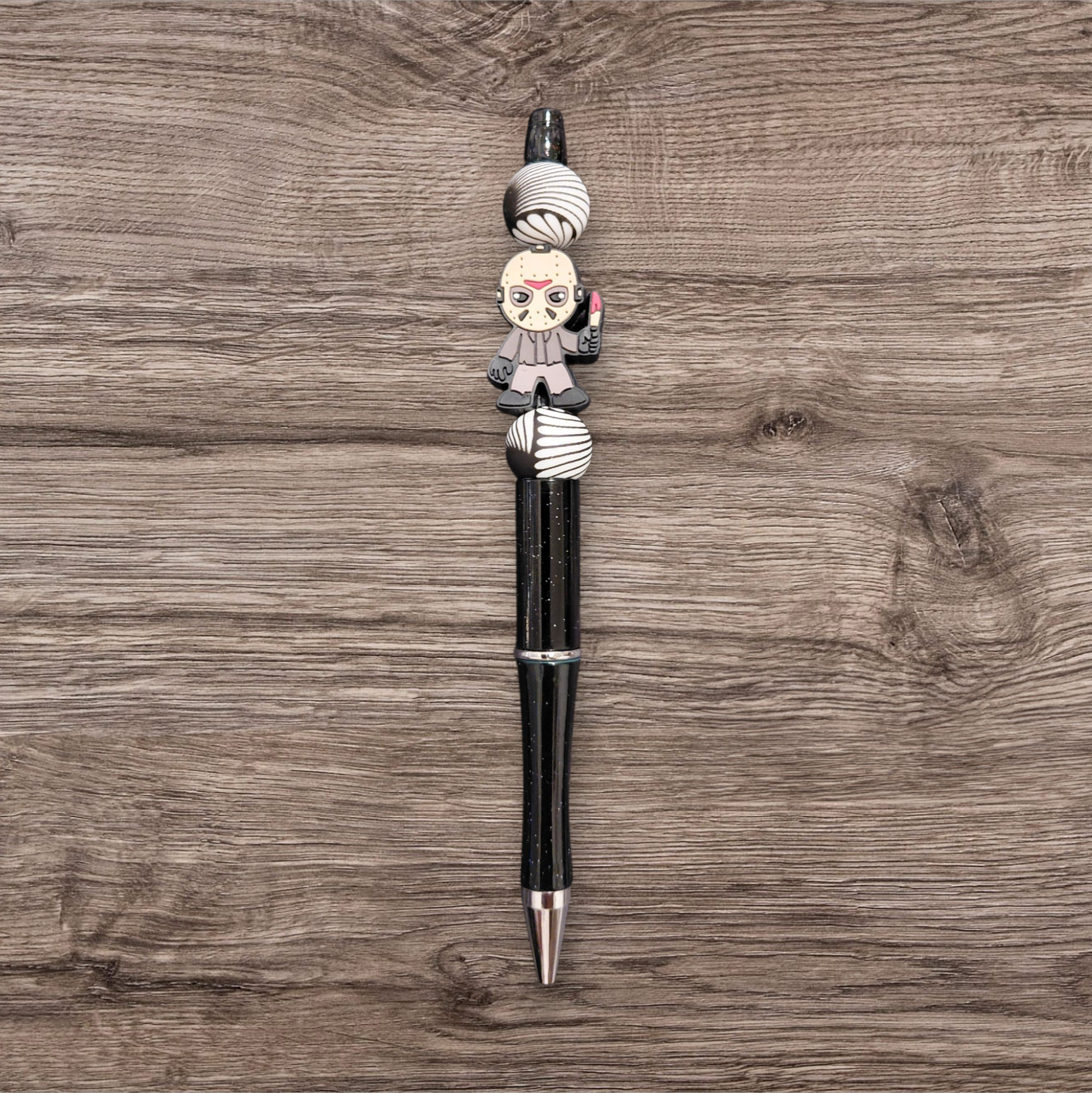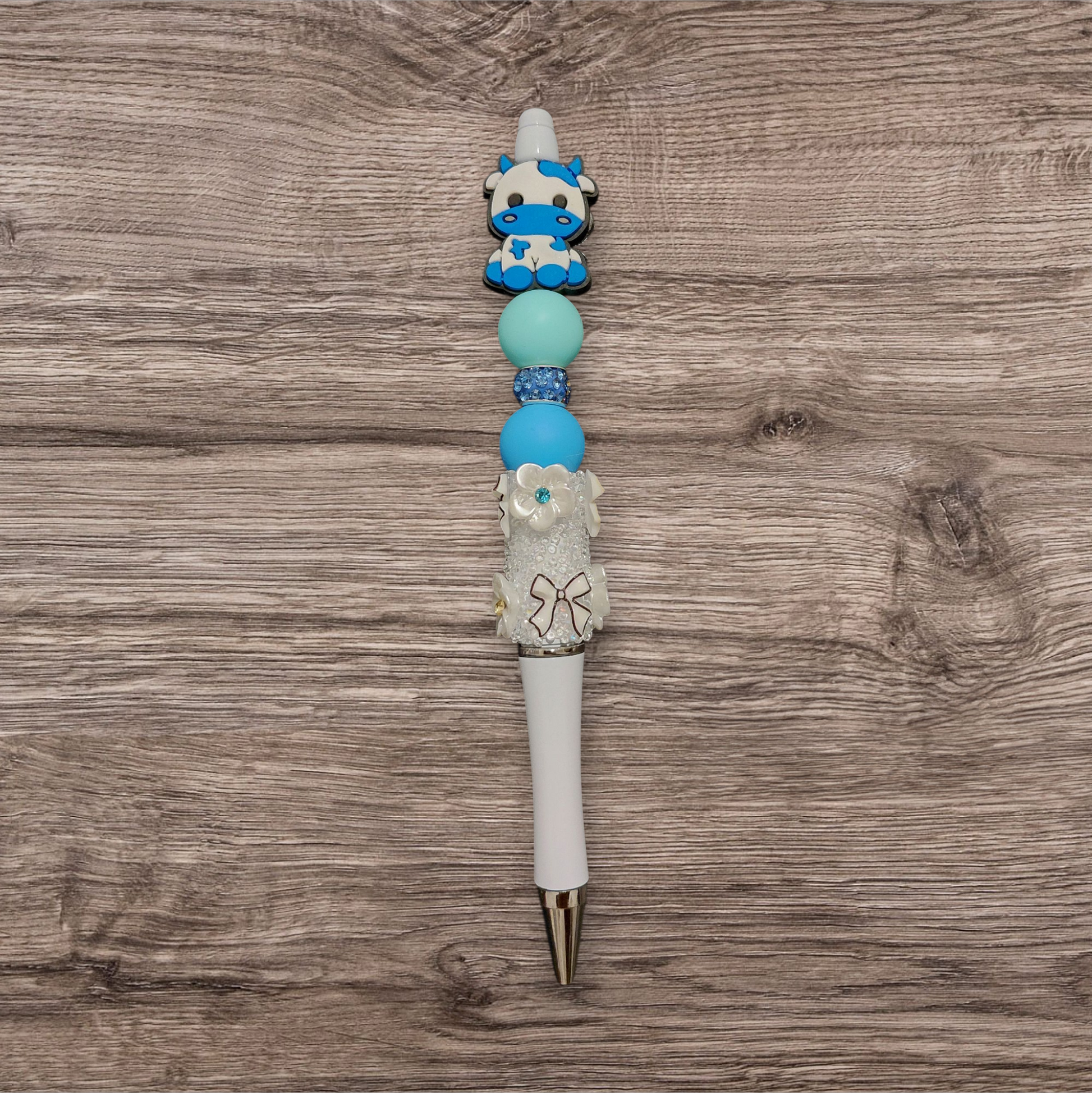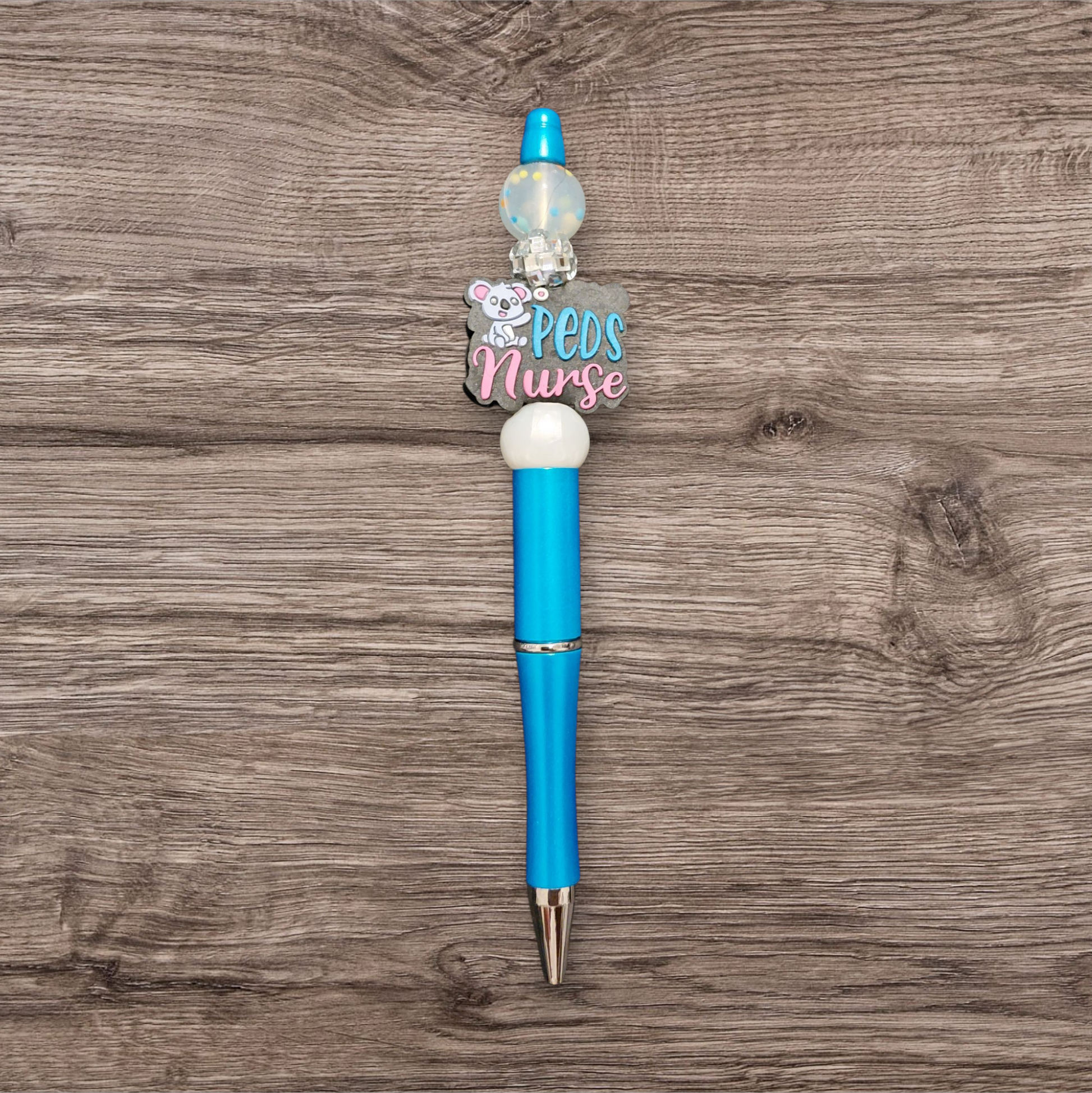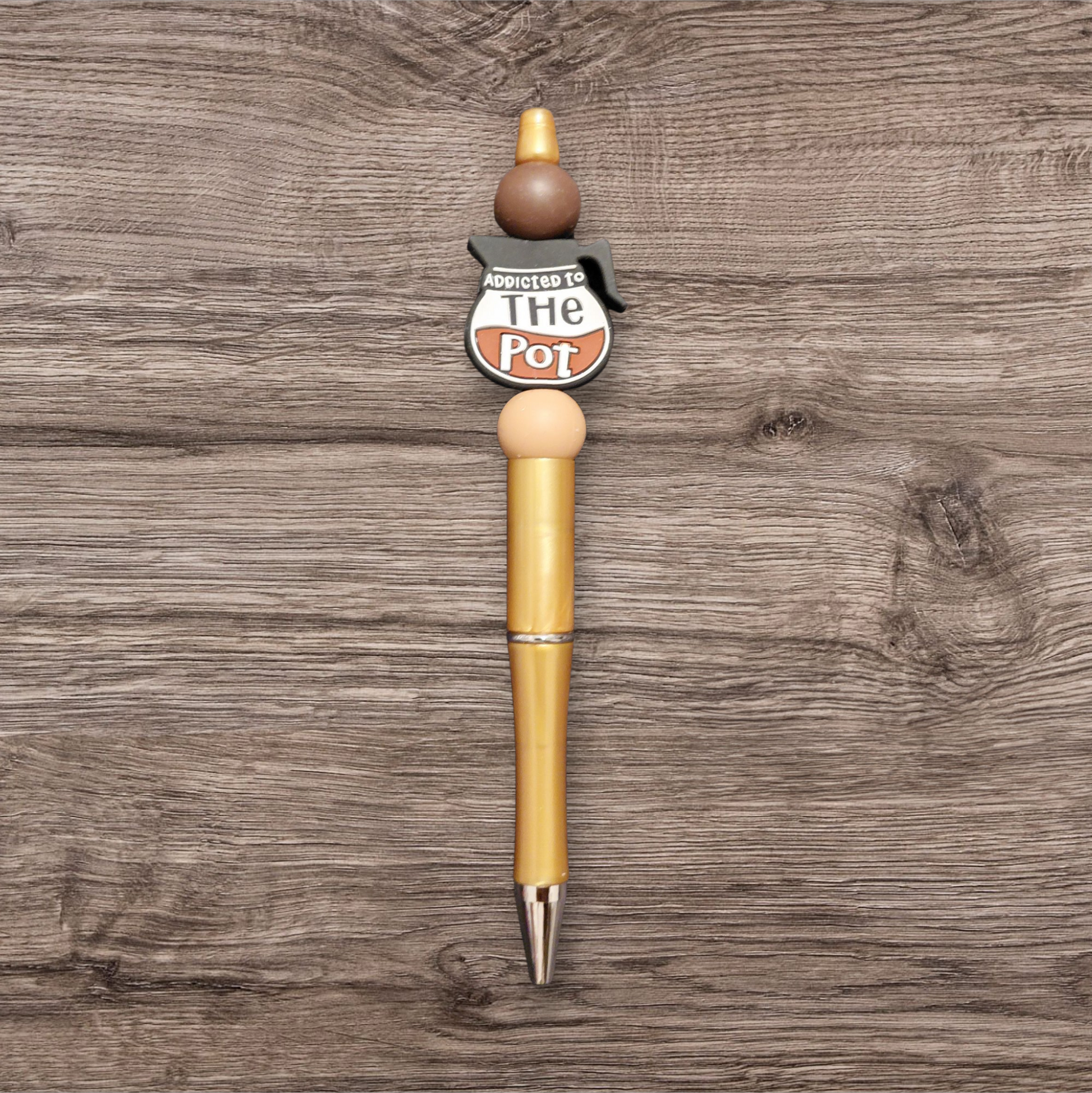 Beaded pens are crafted with silicone beads, spacers, and decorative focal beads.